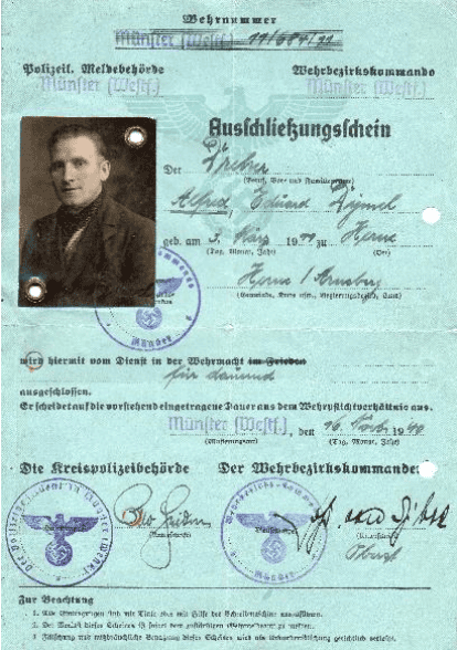 „Nach der Ausbildung im Lager Heuberg (Baden-Württemberg) folgten Einsätze in Griechenland und auf der Krim. Dort erkrankte er an Malaria und musste wegen hoher Fieberanfälle mehrfach in Militärkrankenhäuser, zuerst im August 1943 in ein Lazarett bei Kallithea in Griechenland und zuletzt nach dem Rücktransport Mitte 1944 in das Reservelazarett auf dem Truppenübungsplatz Baumholder (Rheinland-Pfalz). Nachdem ab September 1944, vermutlich nach einer Geheimverfügung von Himmler, keine weiteren Rekrutierungen für die 999-Bataillone mehr durchgeführt und diese zum Teil abgebaut wurden, folgte für Alfred die nächste Schreckensfahrt: Am 27. September 1944 aus dem Lager Baumholder entlassen, ging es für ihn zusammen mit vielen anderen 999-Soldaten per Güterzug direkt ins Konzentrationslager Buchenwald.”