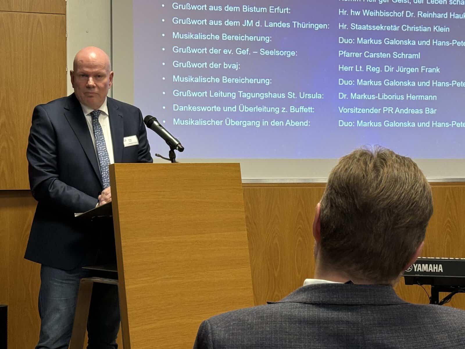 Man könnte es schon eine Tradition nennen, dass sich ein Vertreter oder eine Vertreterin der Bundesvereinigung der AnstaltsleiterInnen im Justizvollzug e.V. (bvaj) mit einem Grußwort bei den Studientagungen der evangelischen und katholischen Gefängnisseelsorge einbringt. Jürgen Frank, Anstaltsleiter der JVA Chemnitz, hat dies gerne getan bei der Tagung in Erfurt 2025 zum Thema Extremismus und Populismus.