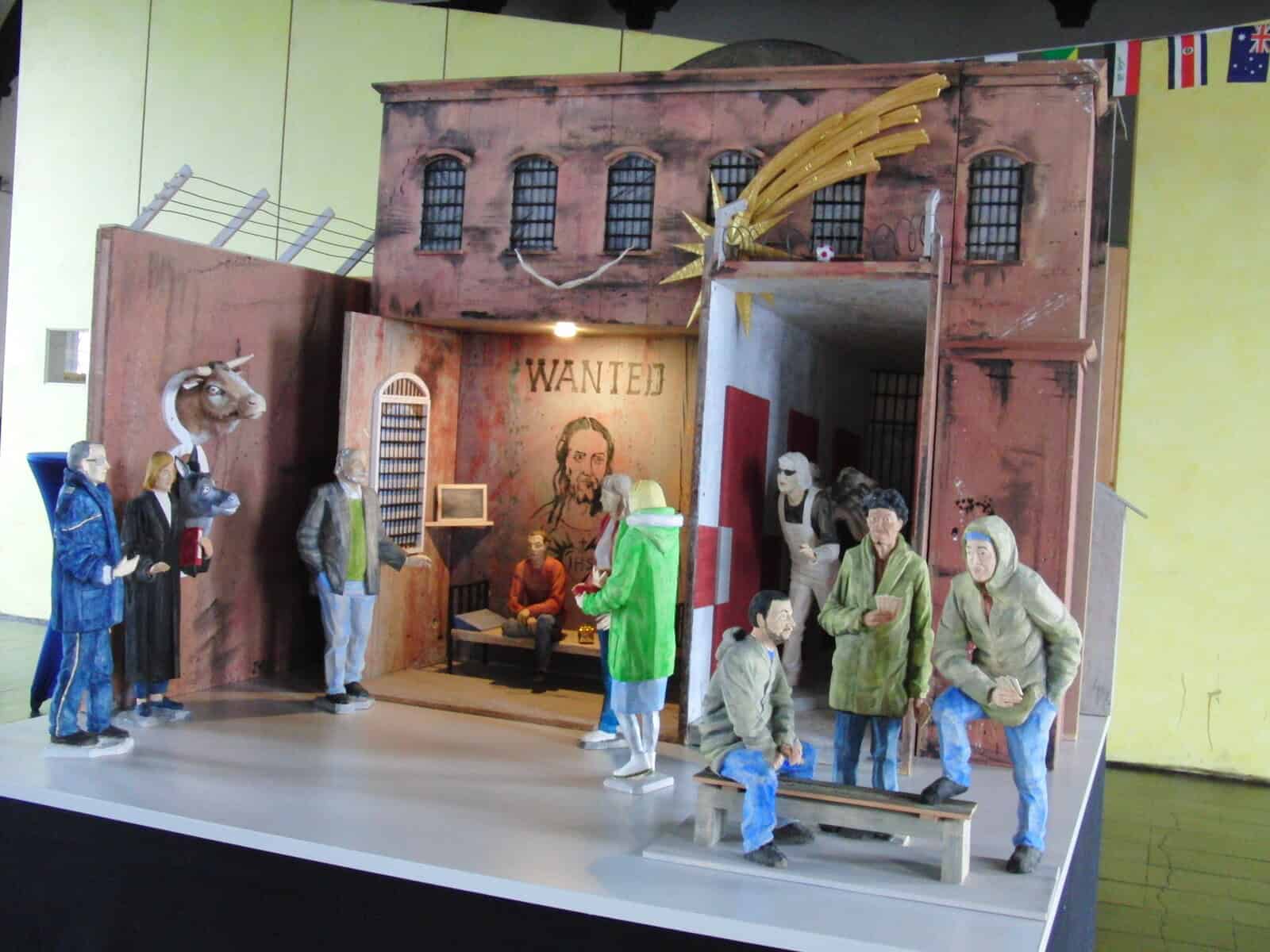 Das erläutern die Gefängnisseelsorger den inhaftierten Menschen und den Bediensteten. „Letztes Jahr war die Knast-Krippe in der 84. Telgter Krippenkunst Ausstellung zu sehen“, erzählen sie. Jetzt zu Beginn des Advents mussten alle Verpackungskisten aufgemacht werden, um die wertvollen Figuren wieder ans Licht zu bringen. Geschaffen hat die Lindenholzfiguren der Holzbildhauer Rudi Bannwarth aus Ettlingenweier bei Karlsruhe. Im Jahr 2021 besuchte der Künstler die JVA und entwickelte mit jugendlichen Gefangenen diese außergewöhnliche und zum Nachdenken anregende Knastkrippe. „Wir wollten die Lebensrealität der Gefangenen hineinbringen in die Krippe“, erklärt Gefängnisseelsorger Michael King.