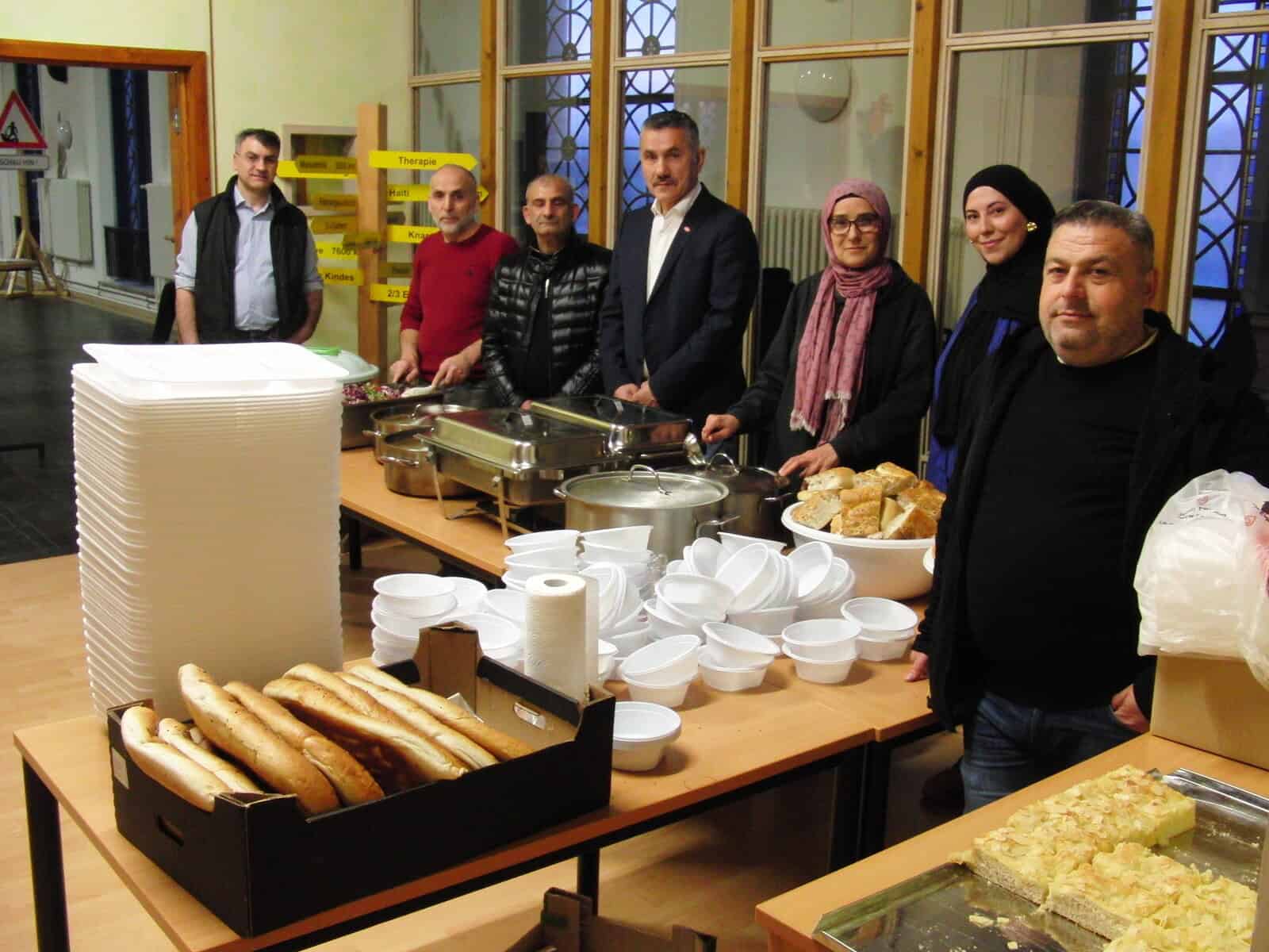 Zusammen mit dem Mitarbeiter des Integrationsdienstes, dem Präventionsbeauftragten und SozialarbeiterInnen bringen die ehrenamtlichen HelferInnen der islamischen Gemeinde Edelstahlbehälter und die Ausrüstung mit. Kurzerhand wird in der Pavillonküche der Anstaltskirche sorgsam aufgebaut. Die Tische müssen von den Abteilungen in die Kirche gebracht werden. Die im Jahr 1882 gebaute Kirche strahlt eine gute Atmosphäre für solch ein Vorhaben aus.
