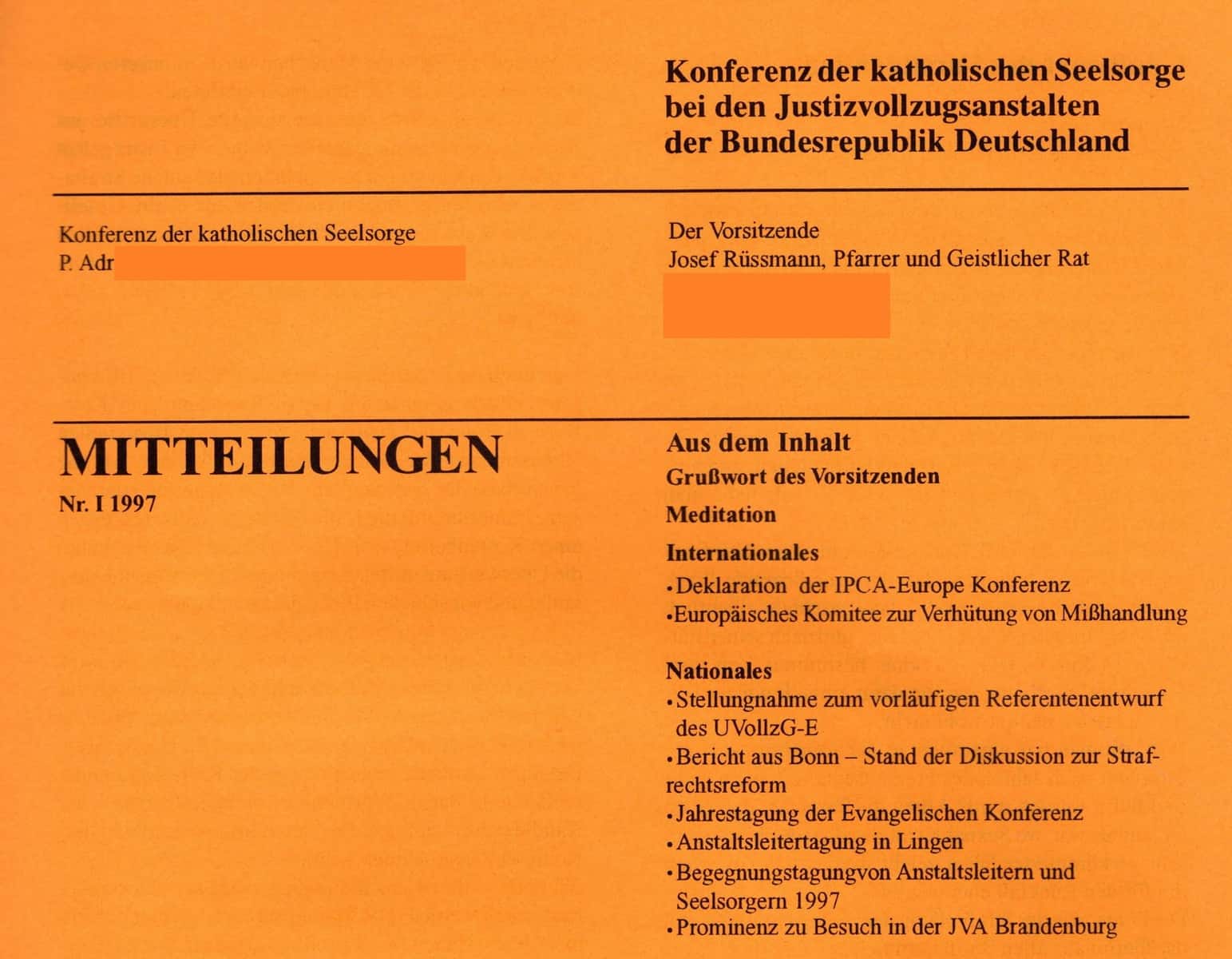 Die Ausgabe der „Mitteilungen“ war das Informationsblatt der damaligen Personenkörperschaft mit dem Namen „Konferenz der Katholischen Seelsorge bei den Justizvollzugsanstalten in der Bundesrepublik Deutschland“. Als Printmedium erschien das Mitteilungsblatt für die interne Kommunikation der MitgliederInnen, die in der Gefängnisseelsorge tätig waren. Bis in die 1990 er Jahre waren vor allem Priester „JVA Geistliche“. Im Laufe der Jahre kamen die anderen pastorale Berufe der „Laien“-TheologInnen hinzu.