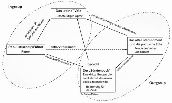 Dr. Stefan Matern (LMU München) hat auf der Tagung der Gefängnisseelsorge in Traunstein mit dieser Grafik ein Grundmuster des Rechtspopulismus beschrieben.