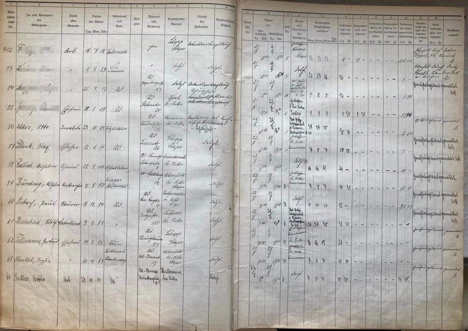 Waterboelles Archiv: Deportation, Aufnahmebuch, Arnsberger Knast, Polizeigefängnis