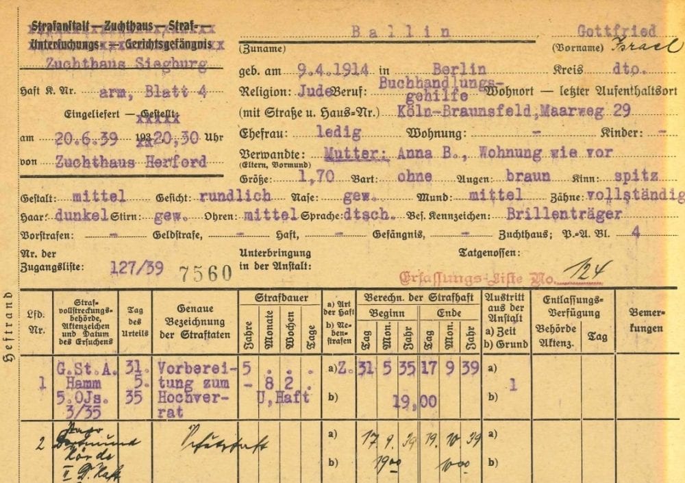 33. Gottfried Ballin: Jüdische Häftlinge im Zuchthaus Herford (Teil IV)